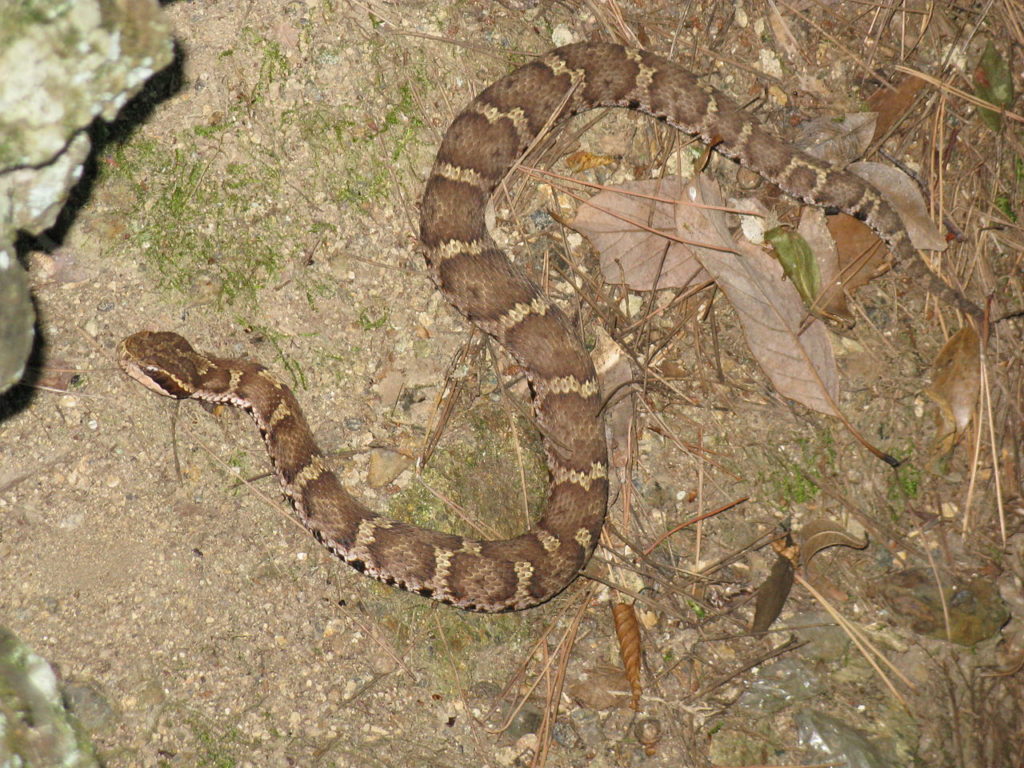 日本の本州や北海道、四国、九州に分布するマムシも有毒なヘビです。ハブよりも2〜3倍の強力な毒性を持ちます。毒牙は先端の2本の歯から注入されますが、毒量はそれほど多くはないため深く噛まれない限り致命傷になることは少ないです。致死量になるとショックや急性腎不全を引起こし死に至ります。ヘビがとぐろを巻い睨みつけて来たら急いでその場を離れましょう。1〜2mのジャンブで飛びかかってくることがあります。