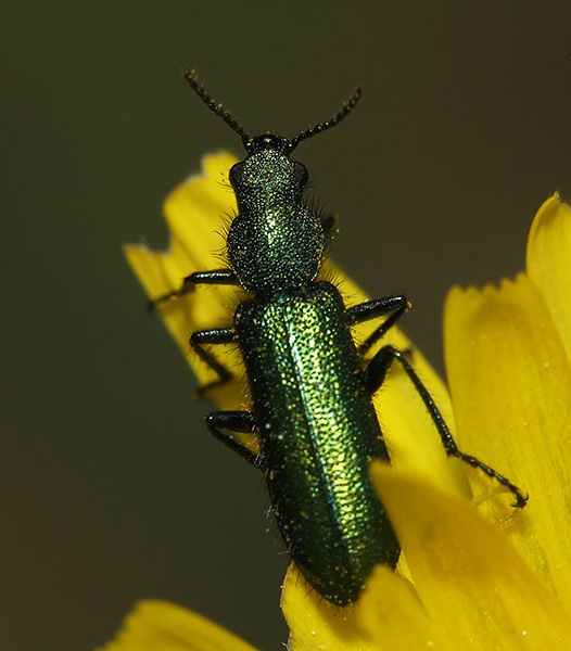 捕食者から身を守るためにカンタリジンと呼ばれる毒素を産生する。ツチハンミョウ科の一種。触れることでひどい水膨れや灼熱痛、出血を引き起こす。